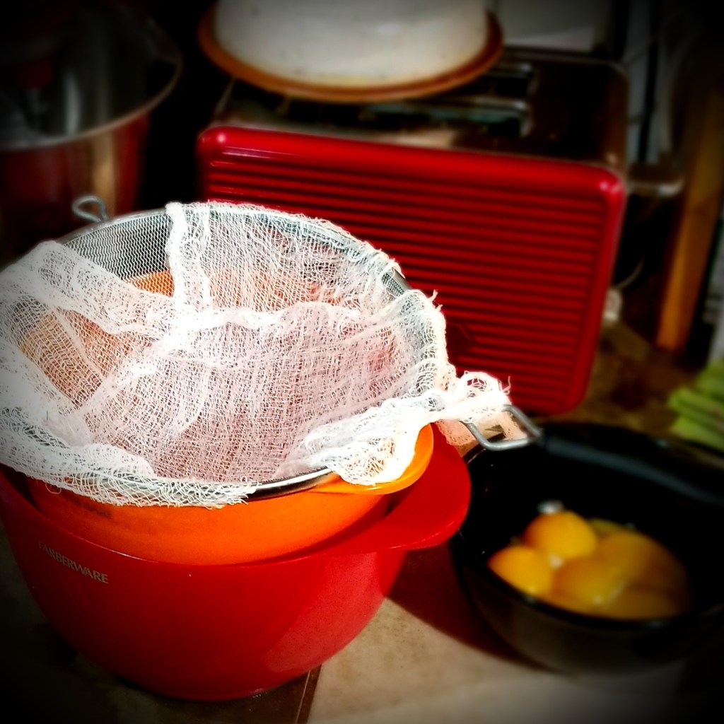 - Line a heat tolerant strainer with two layers of cheesecloth and set over a heat tolerant bowl. set this bowl into an ice bath to chill, and set aside for later.