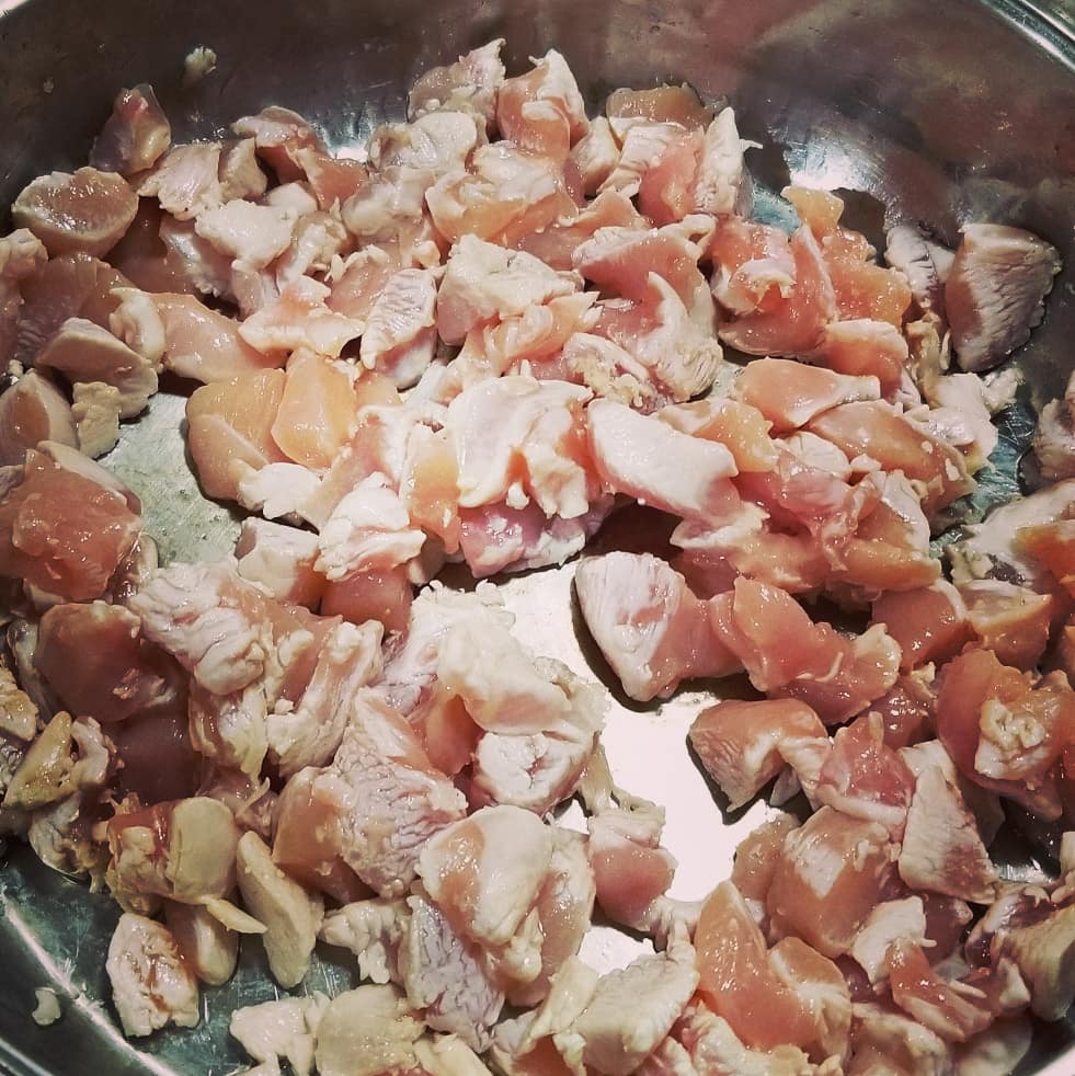 - Cut chicken into small pieces.