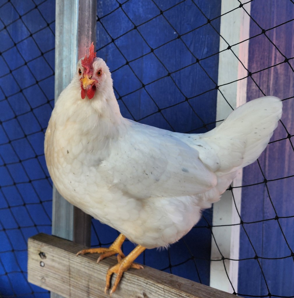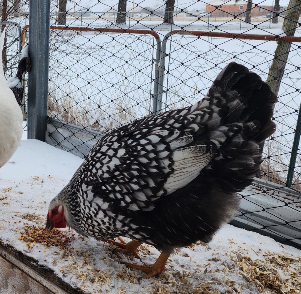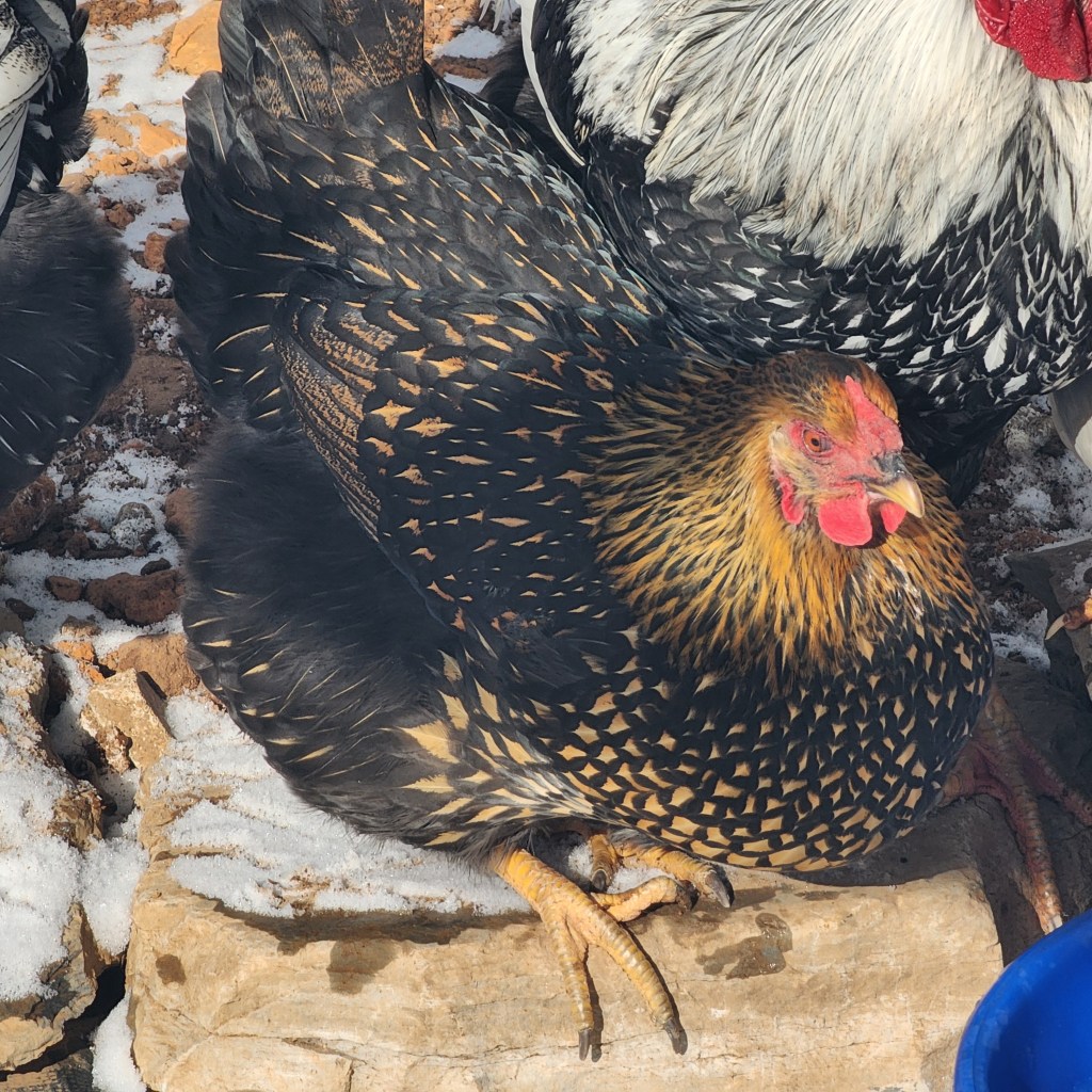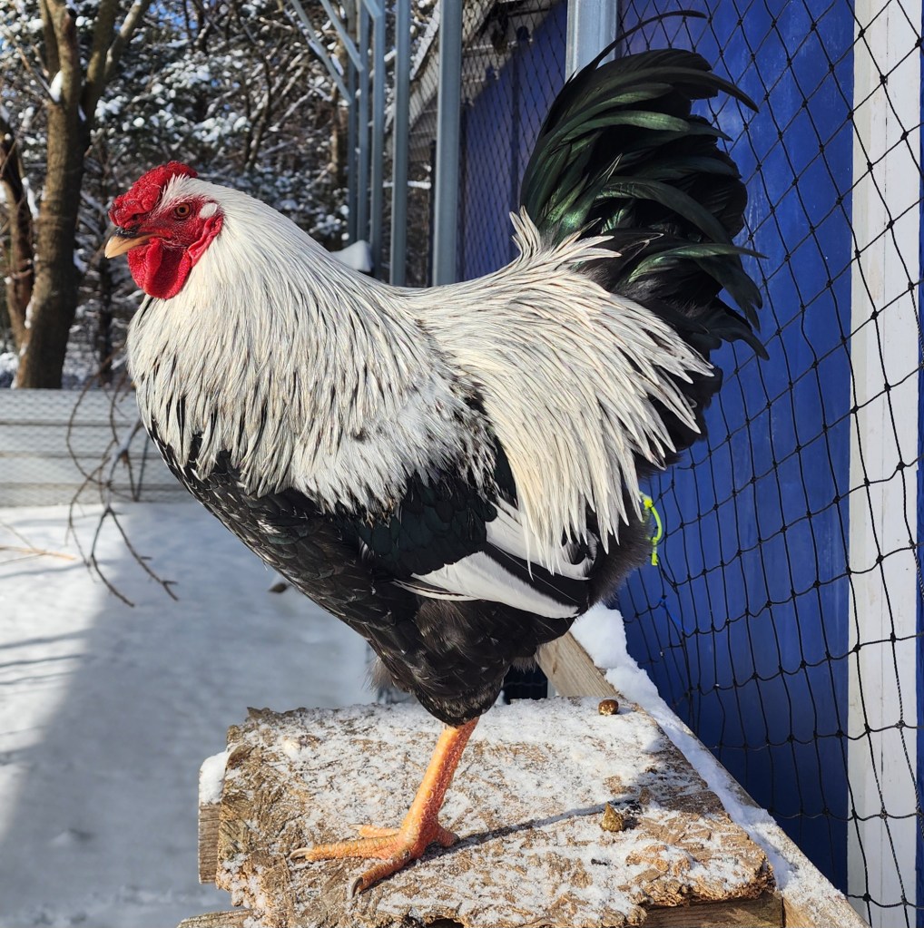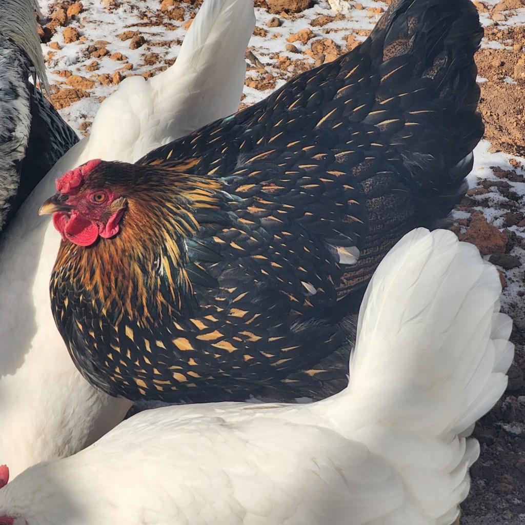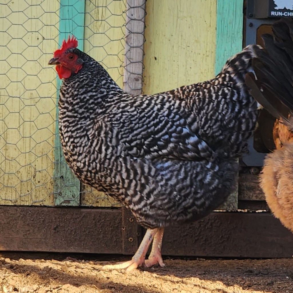 Dommie was hatched here from a cross of Frederick and Silver. She’s a bit independent, but still a sweetheart.