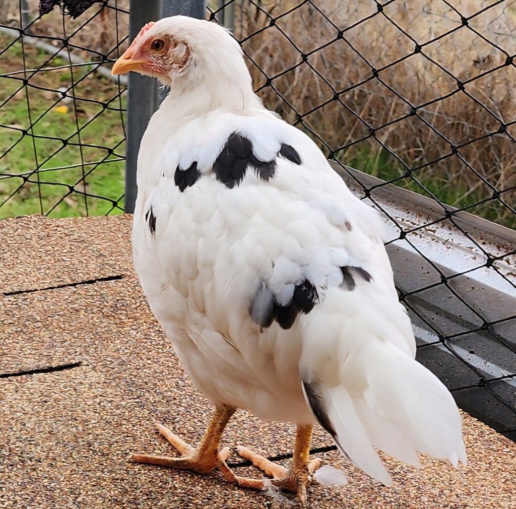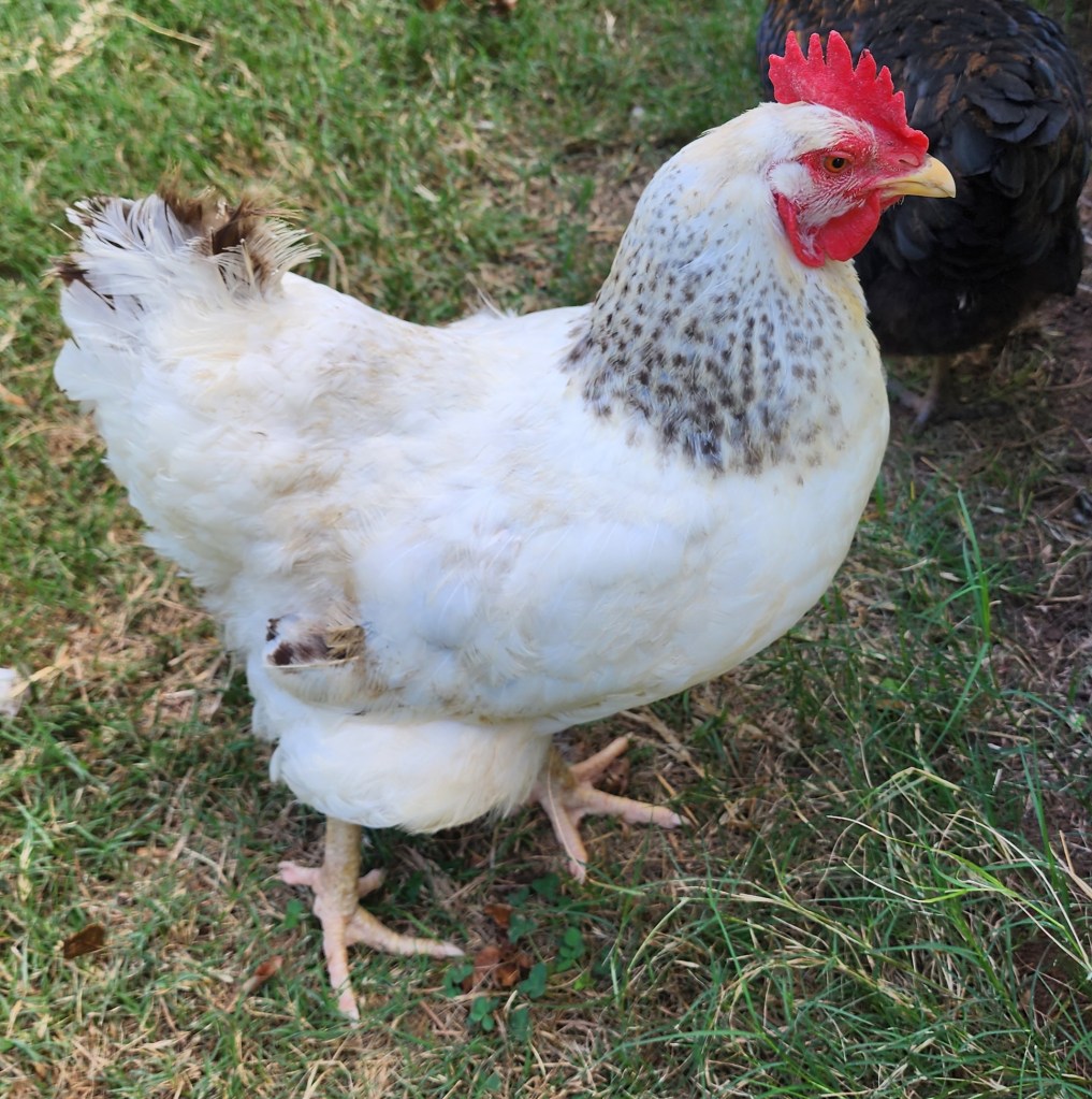 Petrie forgot that she was an Ideal 236 and so she didn’t grow any spots. Maybe that makes her a white leghorn– don’t tell her I said that.